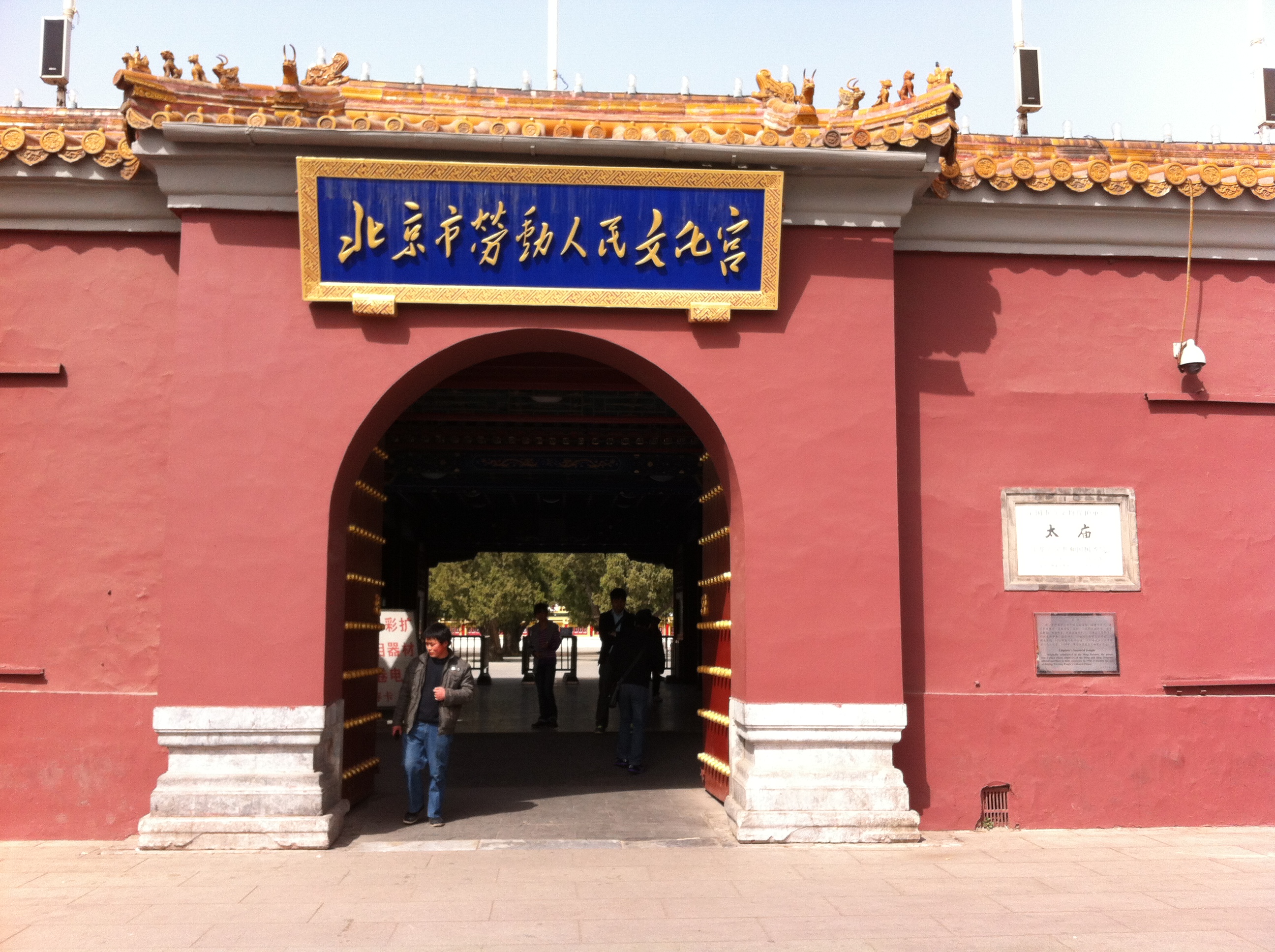 这里不像故宫里有成千上万的游客,没有旅行团领队用扩音机大声解说的及游客们的喧嚣声,太庙就这么静静地守在故宫前方。