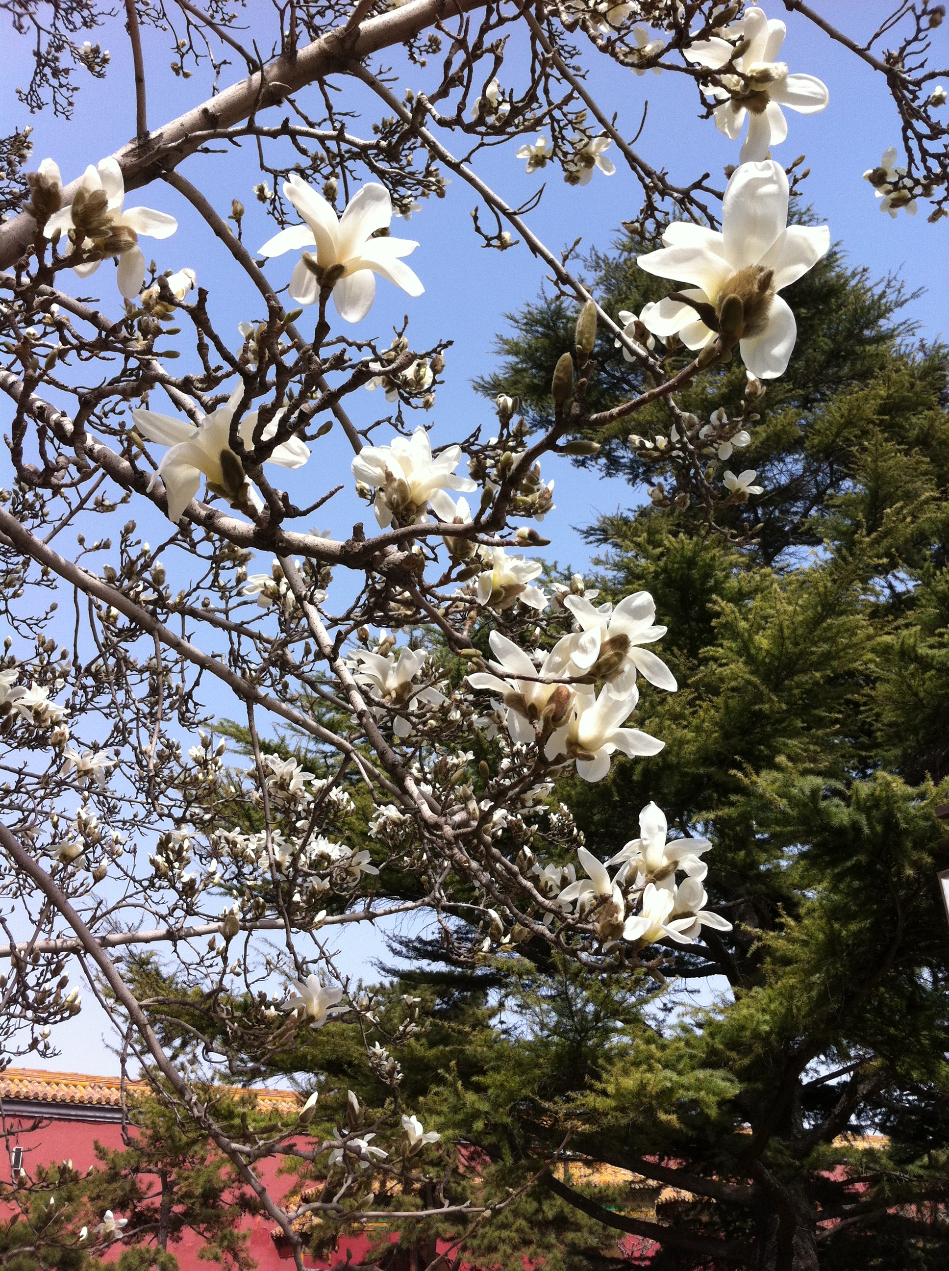 记得进入太庙大门后,映入眼帘的还不是大殿本身,而是一排排开满白色花朵的树,这些老树的树龄很多都是上百岁,还有几棵是600年老树,单单一棵树的历史就比新加坡还要长了。