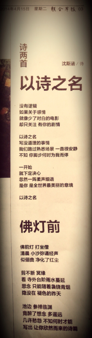 為妳寫詩 April 18, 2014 Share this: Click to email a link to a friend (Opens in new window) Email TweetLike Loading... Related