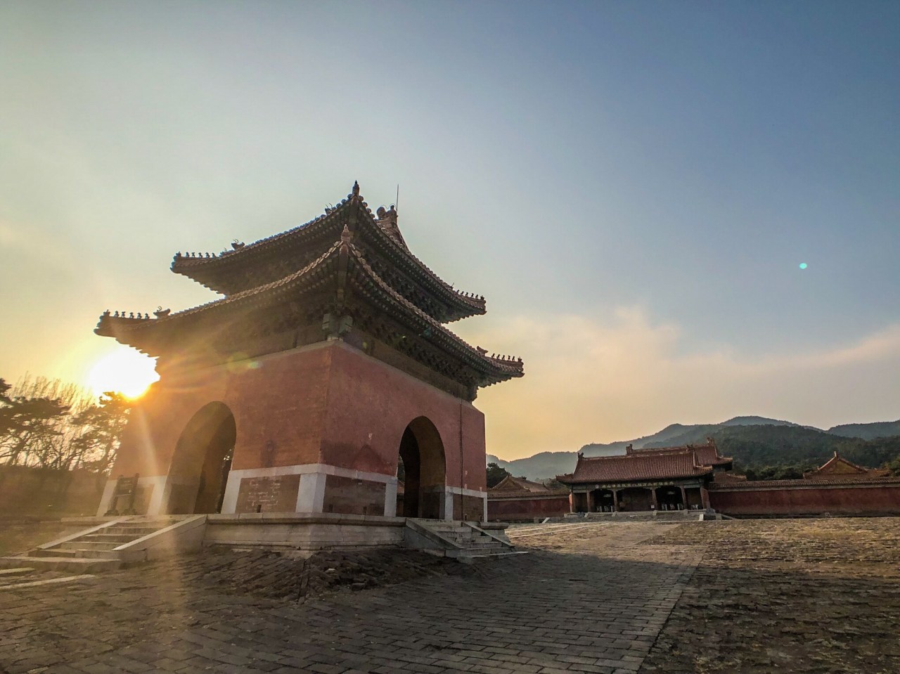 夕阳下的孝陵神道碑亭。(图:摄于2019年4月,清东陵)