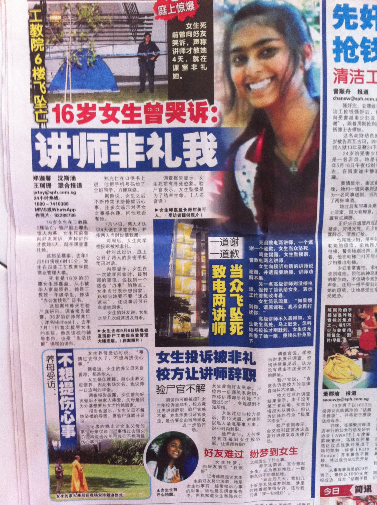 这是我当记者至今,最有满足感的一篇报道,从探知内情到向校方查证(老师是否有因为非礼女学生而受到调查),不少人冒着饭碗被砸破的危险,想办法帮助女死者伸冤。